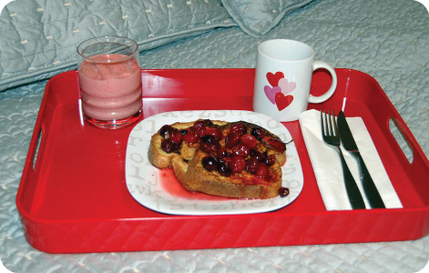 Tom works extremely long, hard hours all year-round, so for this Valentine’s Day, I decided to treat him to a little breakfast in bed – or perhaps – breakfast on the couch while watching SportsCenter. With a few cheap (and reusable!) touches from Target, I’ve put together a delectable Cinnamon French Toast with Cranberry Orange Chutney.
