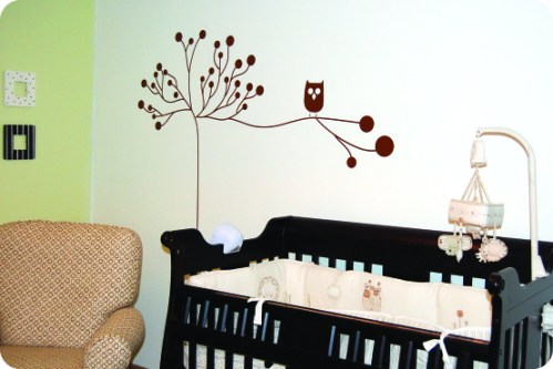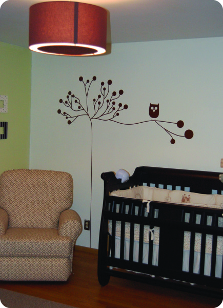 One of my favorite additions to the nursery is the use of vinyl wall art. I purchased this tree and owl piece from Surface Flik through Etsy. Vinyl wall art is an easy way to transform a room without trying to paint yourself or having the expense of hiring an artist. There are hundreds of designs, words and phrases out there that you can pick from. They all come in different sizes, so they work in any space, whether you are looking to add a little something to a small spot on a wall or add some height and a focal point bigger wall like the one in Lincoln’s nursery.