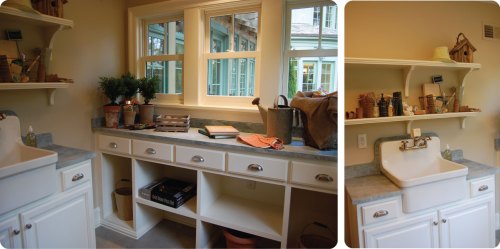 For the creme de la creme, around the corner at the end of the hallway in the back of the house lies a little room with access to the backyard. Yes friends, it was a POTTING SHED! We HAP ladies drooled and swooned over the thought of this beautiful little room with enough counter space to help you plant your succulents and a hose/shower area big enough to wash your dog or just rinse your Wellies!