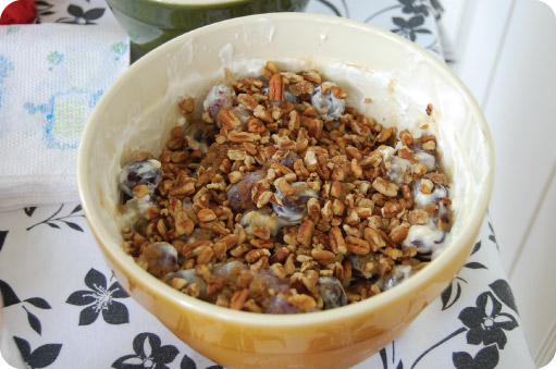 Awhile back, my Grandma came across the recipe for a grape salad, whipped it up and brought it along to one of our many family gatherings. News traveled quickly and the grape salad was a hit.