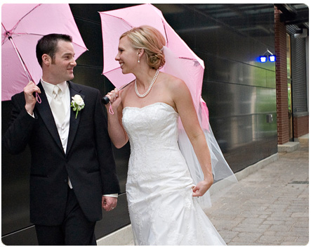 They say it’s lucky if it rains on your wedding day.  Since there were floods and tornadoes on my wedding day hopefully it means I’m going to be SUPER lucky.  Fortunately, my mom had tracked down these pink umbrellas well in advance of the day as a backup plan!