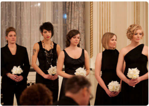 Tip: Brides, try letting your bridesmaids choose their own day of attire. Give them a color, brand or type of fabric to maintain some order, but let them run with it. You chose them because they mean the world to you, right? Why not let your guests see their wonderful personalities mirrored in their style?