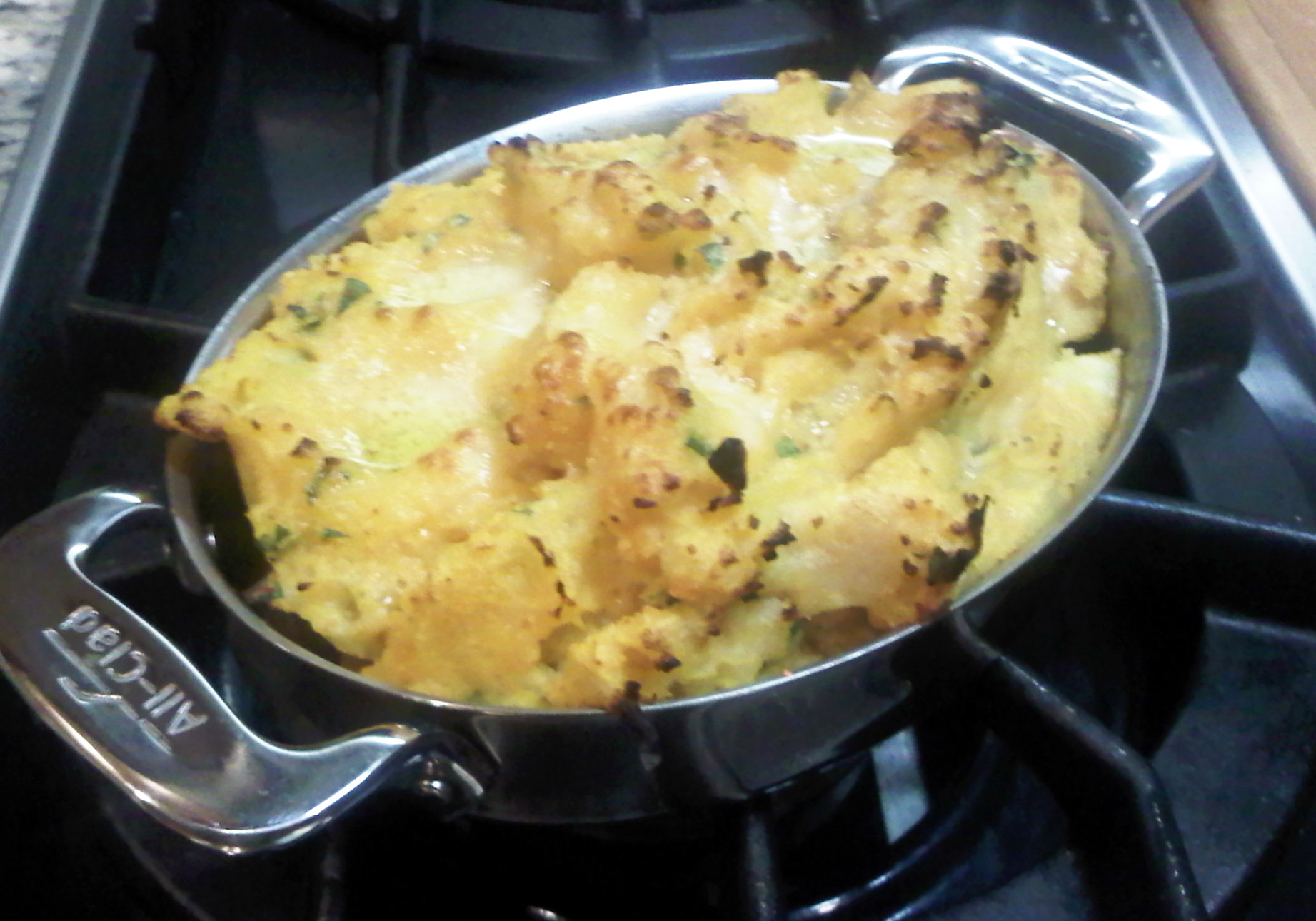 Add the fresh lemon zest, parsley, cracked pepper and more salt if needed. Stir to blend. Spoon into an oven safe baking dish (8×8 or smaller. Perhaps a pretty oval stoneware dish?!).
