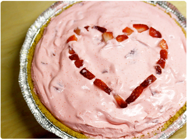 Awww, “pink fluff” pie, a childhood favorite! Great for Valentine’s Day and wonderful in the summer when it’s too hot to turn on the oven and bake a traditional pie