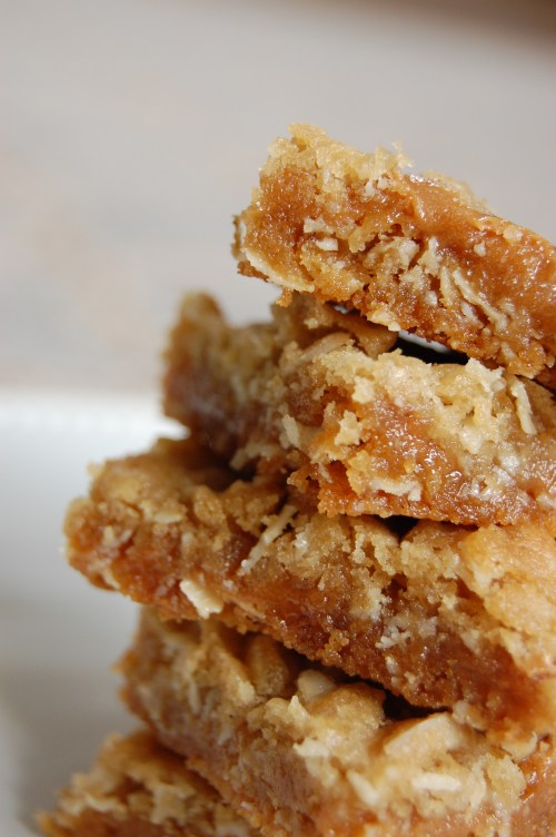 I decided to make my most favorite baked good – Oatmeal Caramelitas.  They are a buttery oatmeal bar filled with ooey gooey caramel and sometimes, depending on my mood, chocolate chips.  This is my sister’s mother-in-law’s recipe which I requested after having just one bite of these delicious treats.