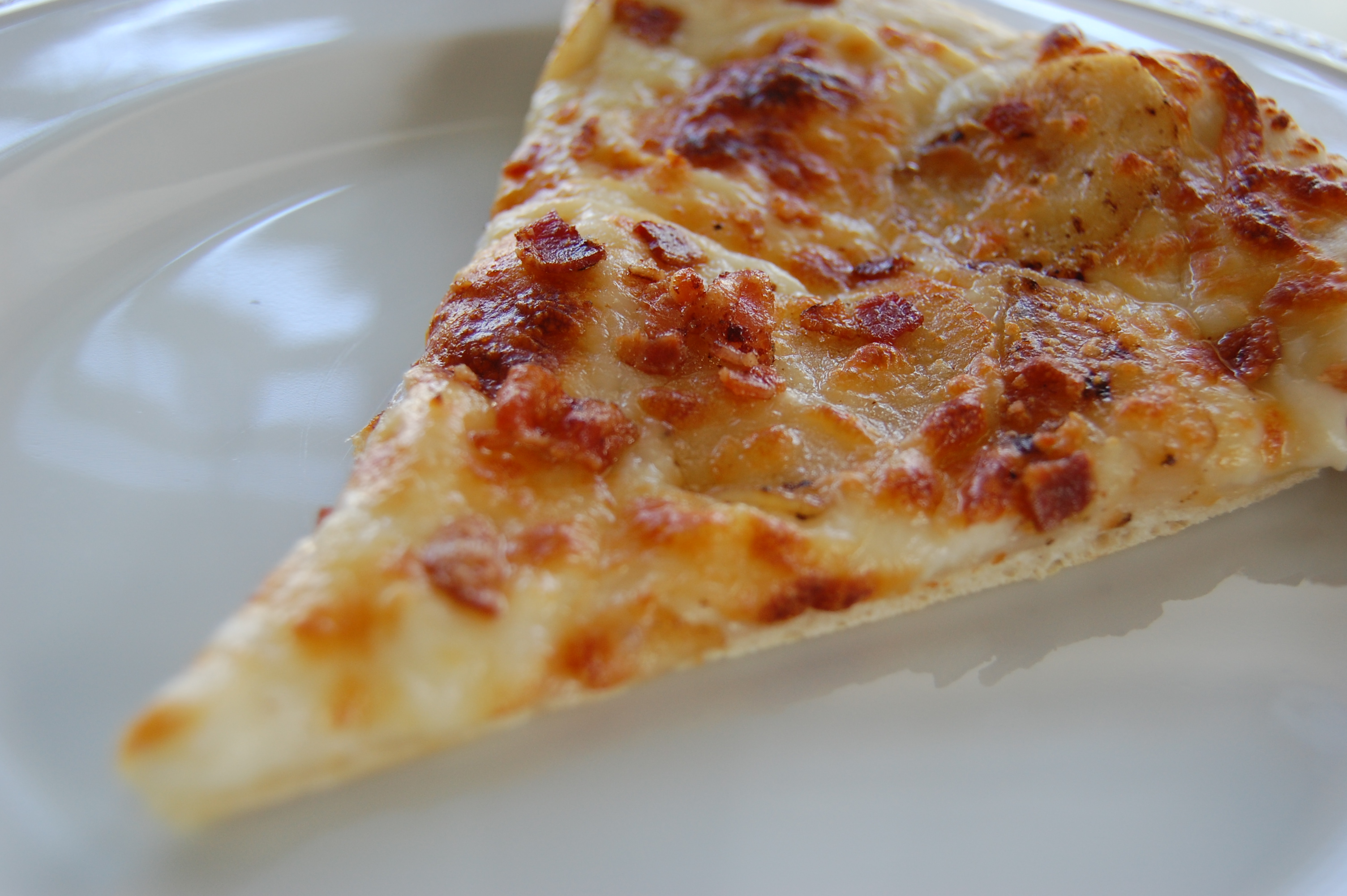Remove the pizza and sprinkle with the cooked and crumbled bacon.