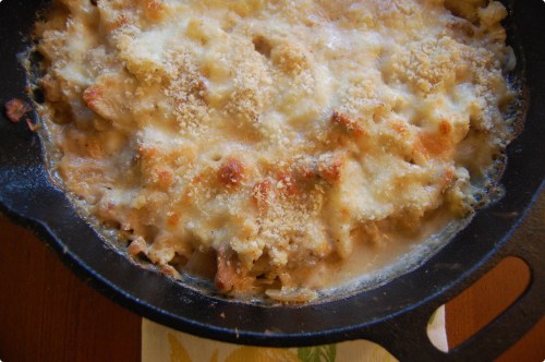 If you don’t have a cast iron skillet or other oven-safe skillet, you can transfer the mixture to a casserole dish before putting on the cheese and panko crumbs.