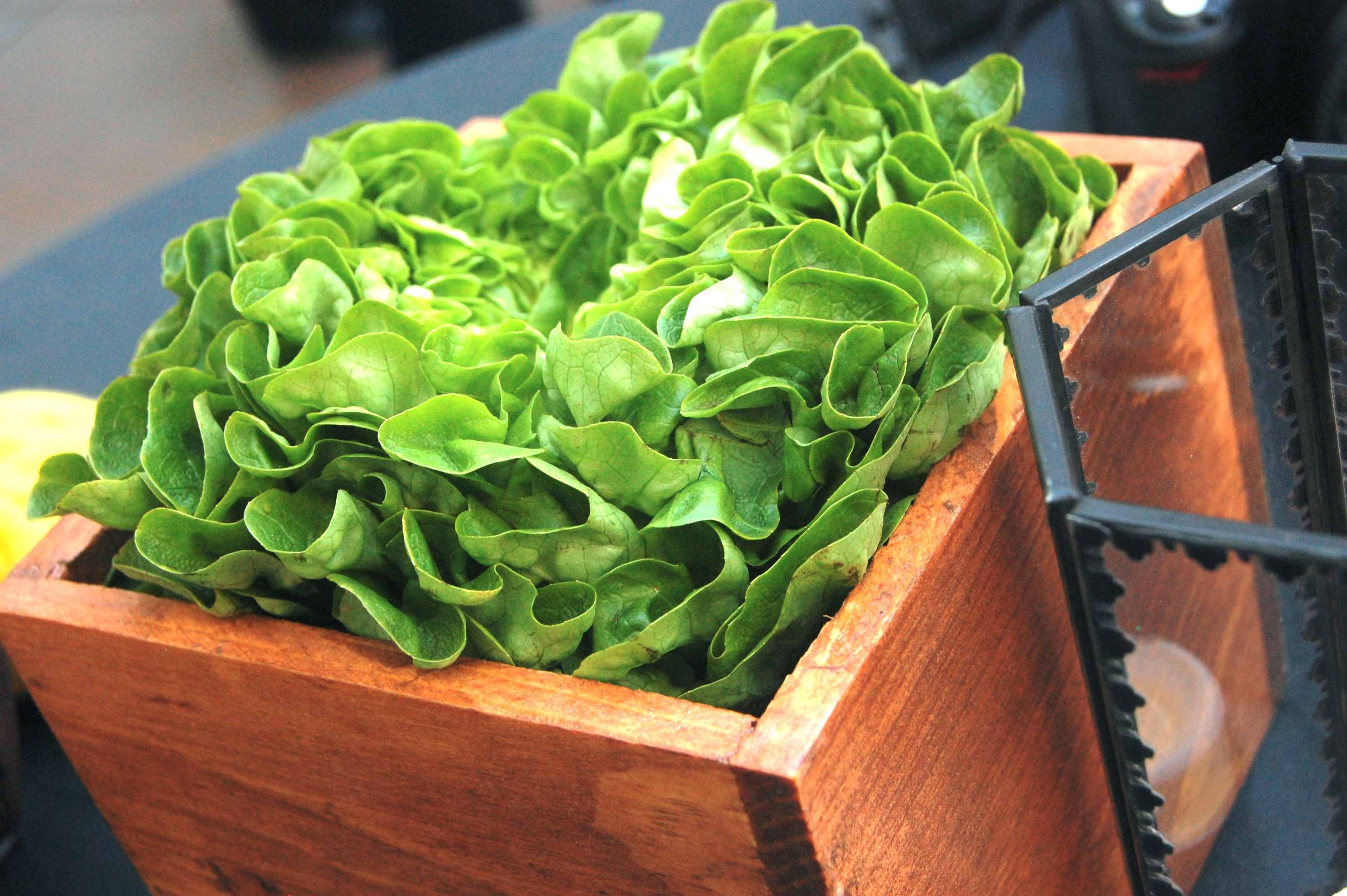 First I had to share the perfectly suited centerpiece ideas. This is a cheap, easy and beautiful way to spiff up a table, especially when salads and greens are on the menu. The tall tables were adorned with square wooden boxes with a full head of butter lettuce, surrounded by candles. One of the larger tables had a rustic farmers market quality to it with a large wicker basket filled with different shapes and sizes of greens and artichokes. An edible arrangement – reusable for dinner the next day.