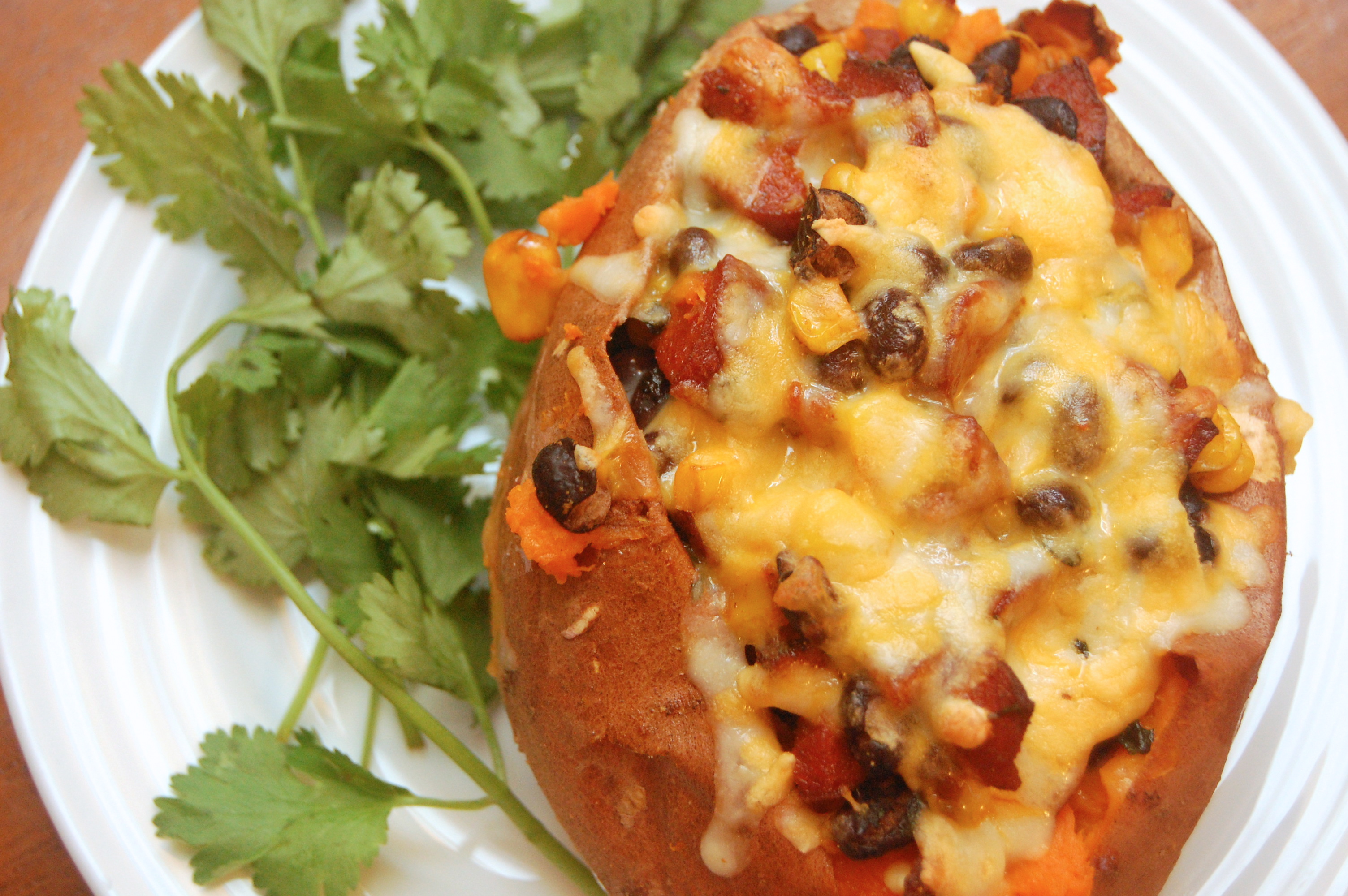 It’s the new year and by the capacity of the parking lot at the gym, health is on everyone’s mind. Wintertime can be a difficult time to eat healthy – less fruits and vegetables are in season and the cold weather aches for caloric casseroles. But you can still have your comfort food and your diet too. Last night I made these twice-baked southwestern sweet potatoes. They are warm and hearty, but are packed with nutrients. For fewer calories, swap spicy chicken or turkey sausage for chorizo.