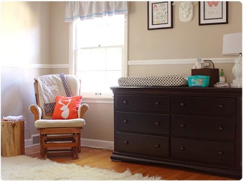 A few months ago I shared my nursery inspiration board and now that Will has arrived it’s time to share the finished room! Since outdoor activities are a certain part of Will’s future, I stuck to my original plan of incorporating woodsy elements in a way that both my husband and I would love. Neutral base colors offset by lots of bright accents around the room helped achieve the calm yet whimsical feel we were going for.