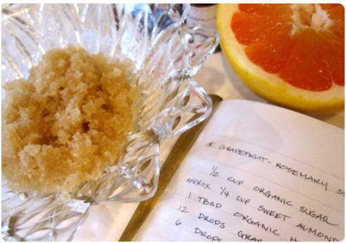 With the warmer months ahead, it’s a great time to start rejuvenating your skin. I like to use a sugar scrub for this very reason. Grapefruit and rosemary essential oils help refine, detox and relieve congestion in the skin, creating a smoother appearance. The sugar is a natural exfoliate and the honey is a great humectant, which helps retain moisture. I use sweet almond oil for this recipe but you could substitute it with jojoba, olive or even avocado oil.