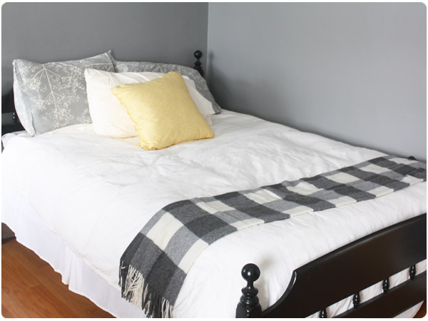 When we bought our house, the guest bedroom was a buttery baby yellow. It was fine but not very sophisticated so the first step was to repaint.