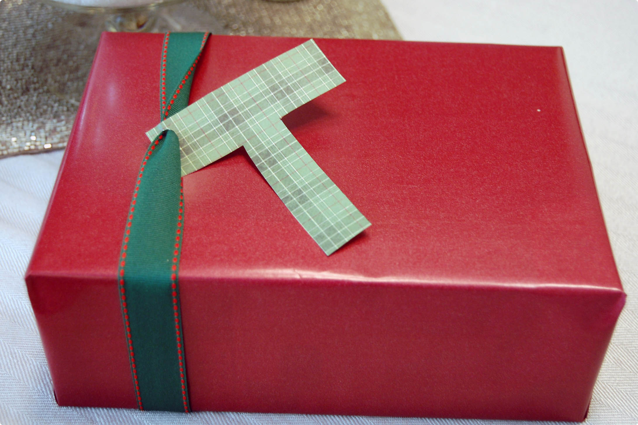 Using the hole punch, place a hole in the upper corner of the tag. Slide through ribbon and attach to package.