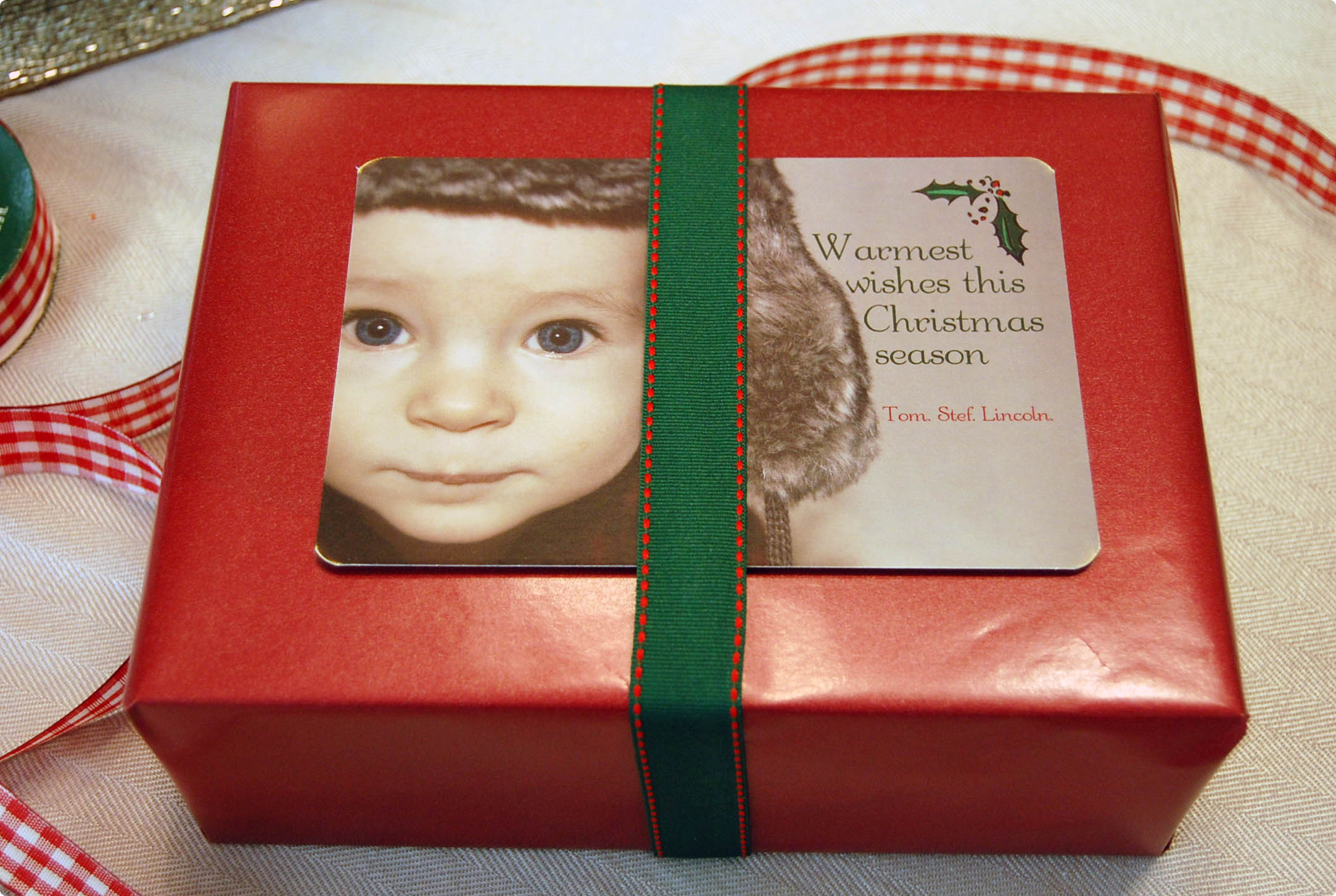 With little ones running around that don’t yet know how to read, I’ve created photo gift tags that they can identify themselves. It would also be fun to use old family Christmas photos or goofy pictures of your friends.