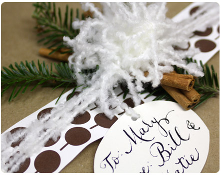 If you have horrible handwriting like I do, I do everything I can to skirt around writing tags. Try cutting scrapbook paper into the recipients initial and tying it on with a ribbon. You can also print homemade tags on the computer.