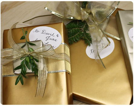 Have a smaller box or oddly shaped gift to wrap? Use a holiday tea towel or dish towel for a unique unveiling experience. Just wrap the gift and either knot the towel or use craft ribbon to keep it from unfolding. It is a bonus two gift in one!